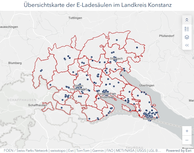 Zum aktuellen Stand der Elektromobilität im Landkreis Konstanz, haben wir für Sie die Übersichtskarte der E-Ladesäulen im Landkreis Konstanz von Landratsamt Konstanz bereitgestellt. Auf dieser sehen Sie neben der bestehenden Ladeinfrastruktur im Landkreis auch Detailinformationen für jede Gemeinde. Die Übersichtskarte zeigt die Ladeeinrichtung und Betreiber der E-Ladesäulen und die Anzahl der Ladepunkte.